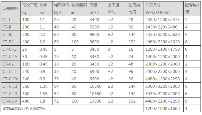 ·利用强制通风作用,箱内设有可调式分风板,物料干燥均匀,热源可采用蒸汽、导热油、电、热水、远红外等,选择广泛。